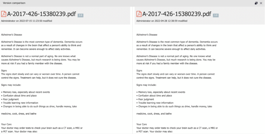 Besides versioning, we have a version comparison feature that users can see both version side by side to see the difference
